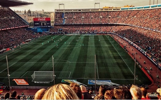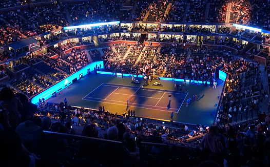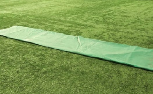 広げたシートを縦横少しずつ重ねながら、アリーナまたは、球場に敷きつめていきます。