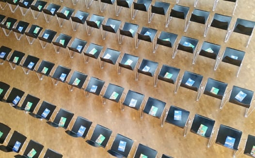 イスの背もたれに座席番号をつけていきます。