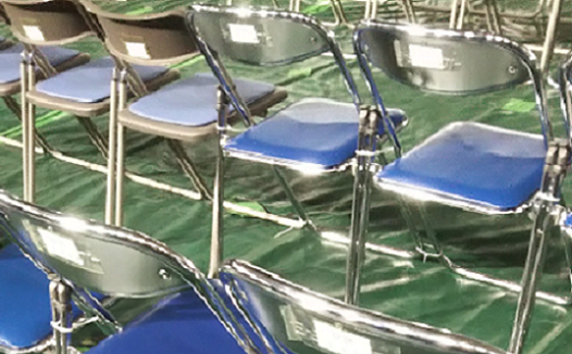 イスの入ったパレットを所定の位置まで運び、下ろし、配っていきます。